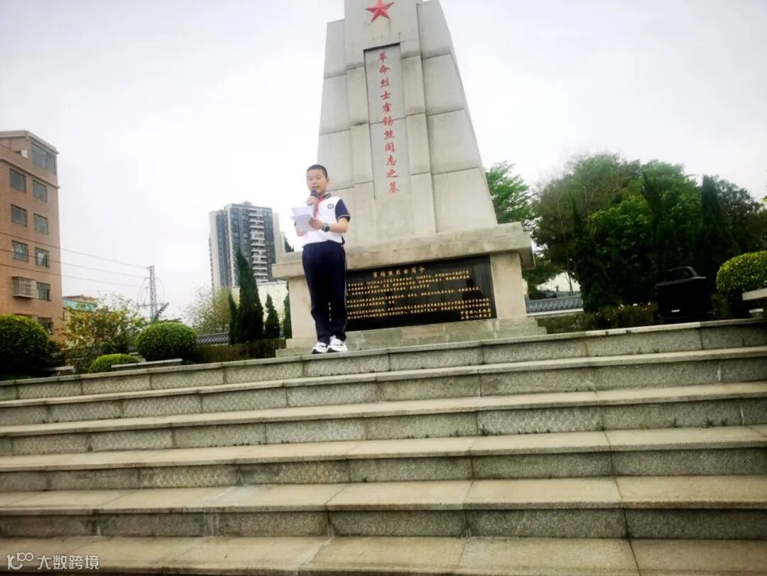 默哀结束后,少先队员代表黎可滢在烈士墓前宣讲霍锡熊烈士的一生英勇事迹:“霍锡熊烈士为民族独立和人民幸福献出了宝贵生命,他的精神如同这座丰碑永远屹立。我们定会珍惜来之不易的幸福生活,以先烈为榜样,勤奋学习、强健体魄,长大后为祖国建设贡献力量!”稚嫩却坚定的声音道出了全体队员的心声。紧接着,大队辅导员刘老师带领全体队员重温入队誓词:“我是中国少年先锋队队员,我热爱中国共产党,热爱祖国,热爱人民……”铮铮誓言响彻云霄,少先队员们高举右拳,目光如炬,将“为共产主义事业贡献力量”的信念深植于心。仪式最后,队员们依次缓步绕行纪念碑,将手中的白菊轻轻摆放在碑前。朵朵白菊如雪,寄托着对英雄的无限哀思,更象征着红色基因在新时代少年心中的传承。