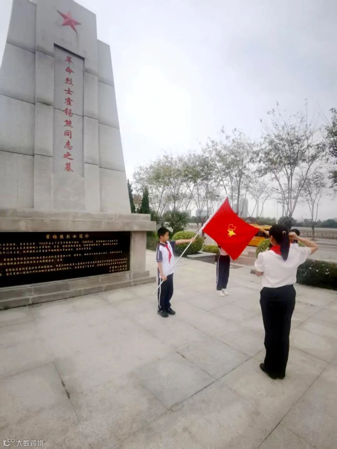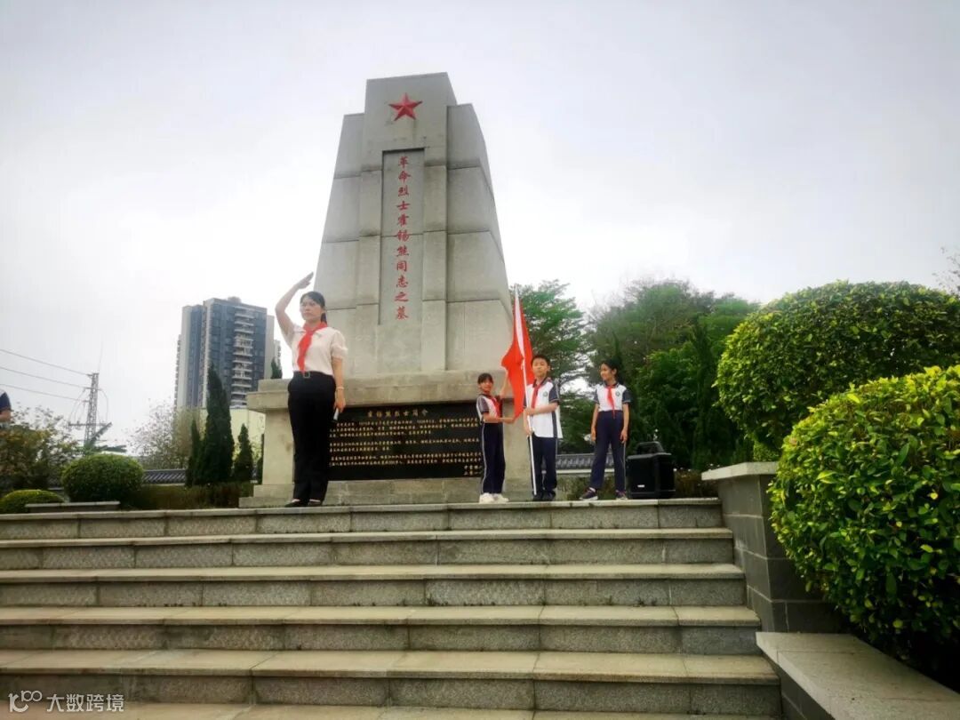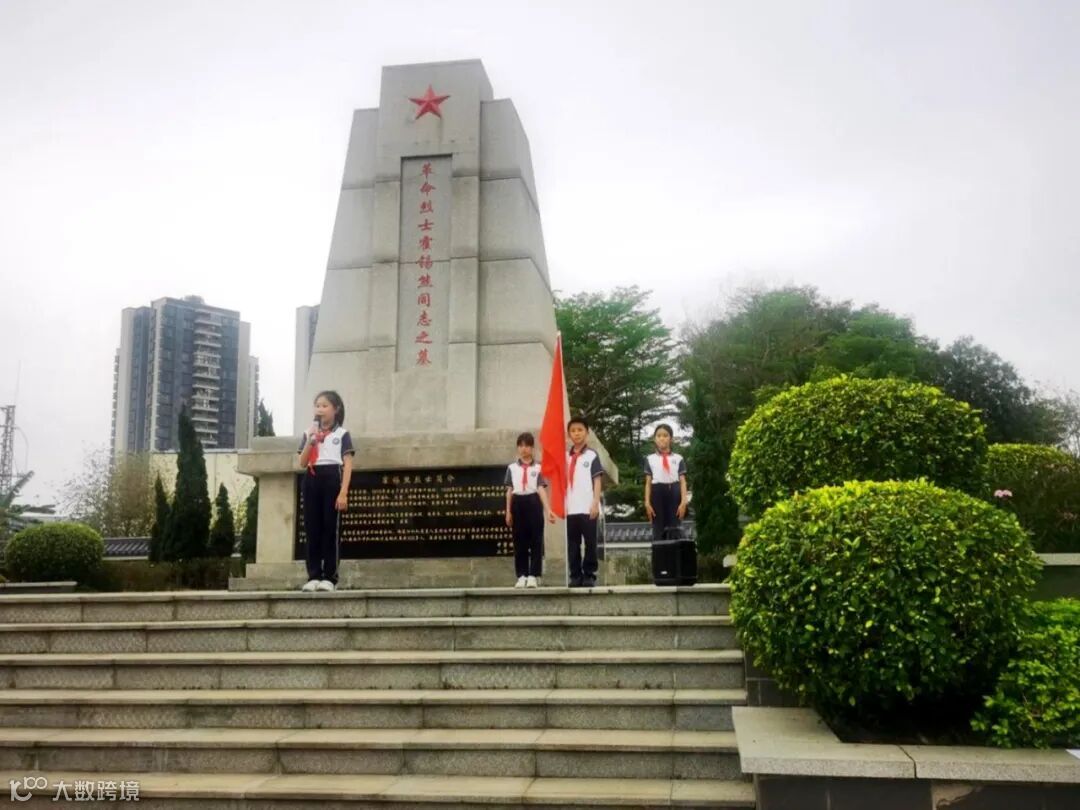 当日下午,少先队中堂镇槎滘小学大队四年级的54名少先队员身着整齐校服,胸前飘扬着鲜艳的红领巾,手持自制白菊,怀着崇敬与追思之情,在少先队大队辅导员刘彩云老师的带领下,坐校车到霍锡熊烈士墓。青松翠柏掩映下的烈士纪念碑庄严肃穆,“革命烈士霍锡熊同志之墓”的红色大字在阳光下熠熠生辉。
