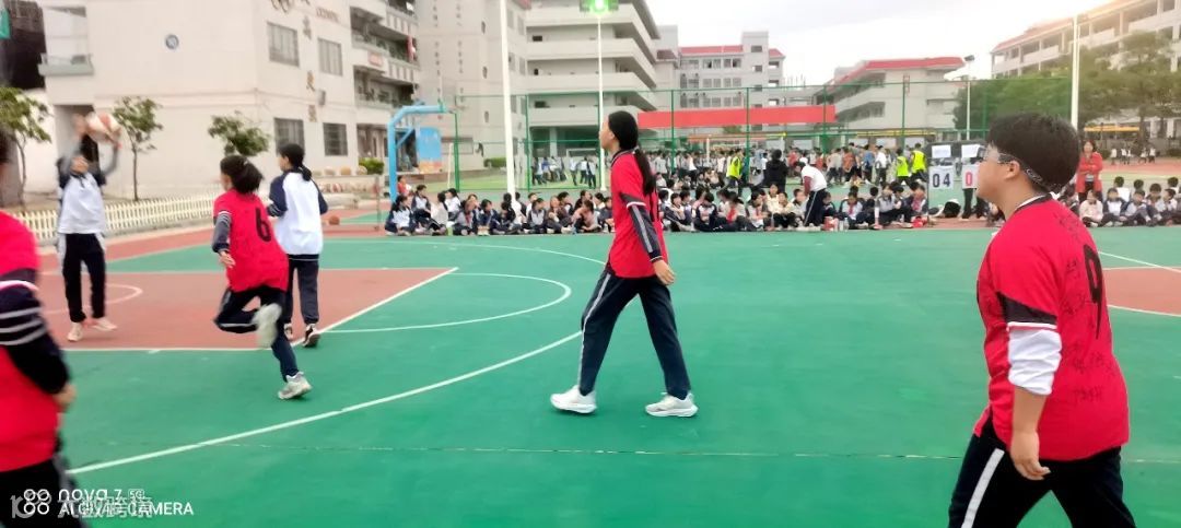 赛场上,球员们精神饱满、斗志昂扬,传球、拦截、突破、投篮、进攻、防守,每一招式都有模有样,在比赛中展现了非凡的默契与协作能力,无论是精妙的传球,还是默契的防守,都让人眼前一亮。尤其是六年级的决赛,603班男子全程落后十分,进入到第四节时,不服输的603班开始全力防守,并在关键时刻连中两记三分,最后打平进入加时!加时赛,两队交替得分,最后一分钟,604班抢断并打进2分,命悬一线的603班不放弃,选择投三分,并造成对手犯规。603班稳稳三罚全中,最后艰难拿下比赛!当他们获胜的那一刻,全场沸腾起来!