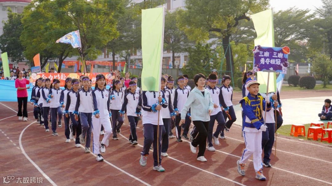 会徽、彩旗、鲜花方阵以及仪仗队方阵紧跟其后,飞扬的旗帜猎猎作响,恰似学校奋进前行的烈烈号角,满是蓬勃朝气与勇敢无畏的运动精神。