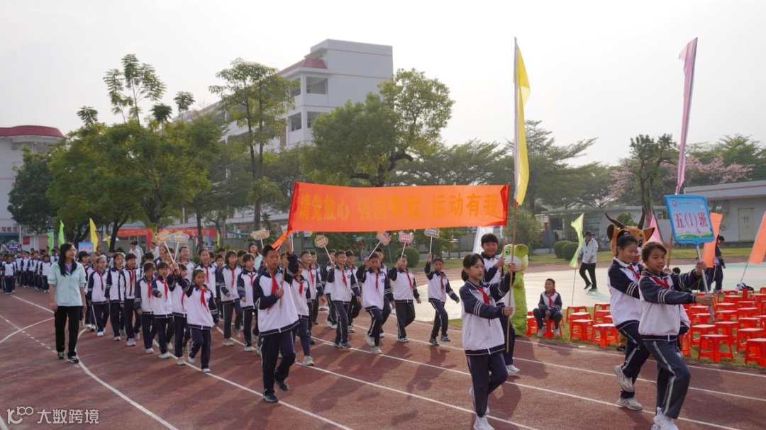 各班级方阵更是创意满满,活力四射。一至六年级的同学们尽显班级风采。你看,少年们手持特色班牌、班旗、横幅等道具,步伐沉稳有力,响亮整齐的口号穿越着槎小校园,尽显昂扬精神。