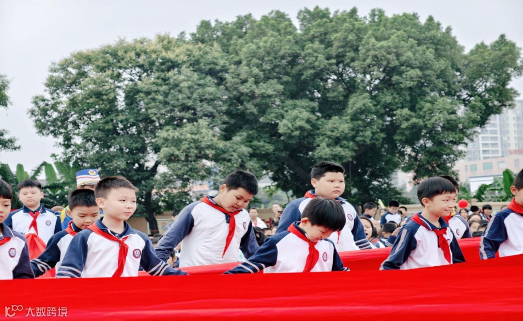 国歌在云霄中回荡,五星红旗在风中飘扬。槎小全体师生及观礼家长们昂首挺胸齐唱国歌,庄严肃立,向国旗致以崇高的敬意。