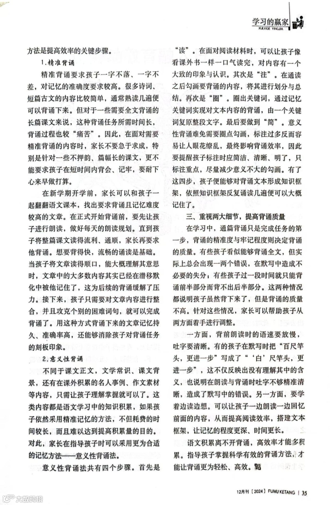 语文积累离不开背诵,高效率才能多积累。指导孩子掌握科学有效的背诵方法,才能让背诵更为轻松、高效。