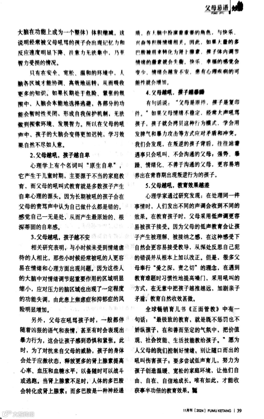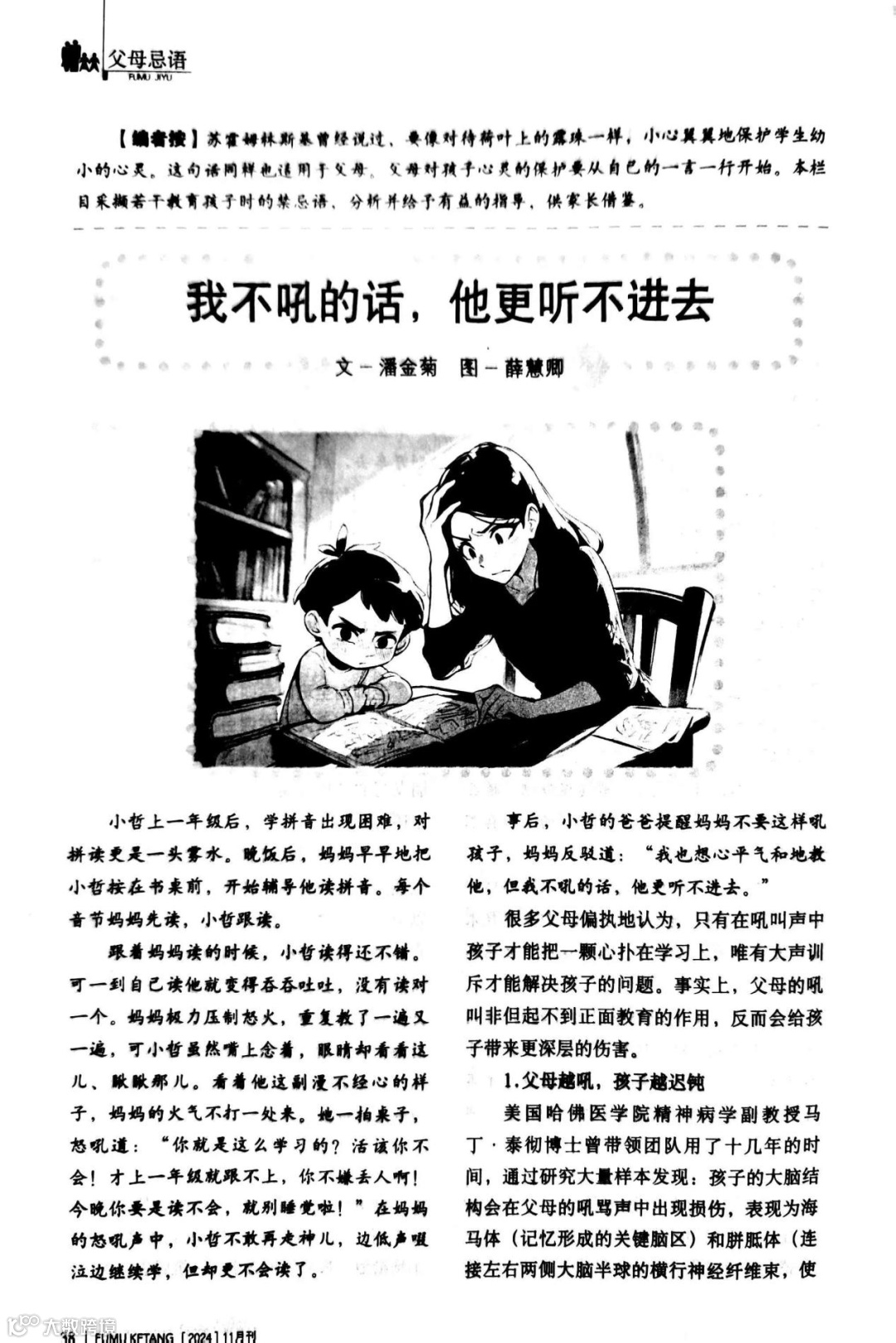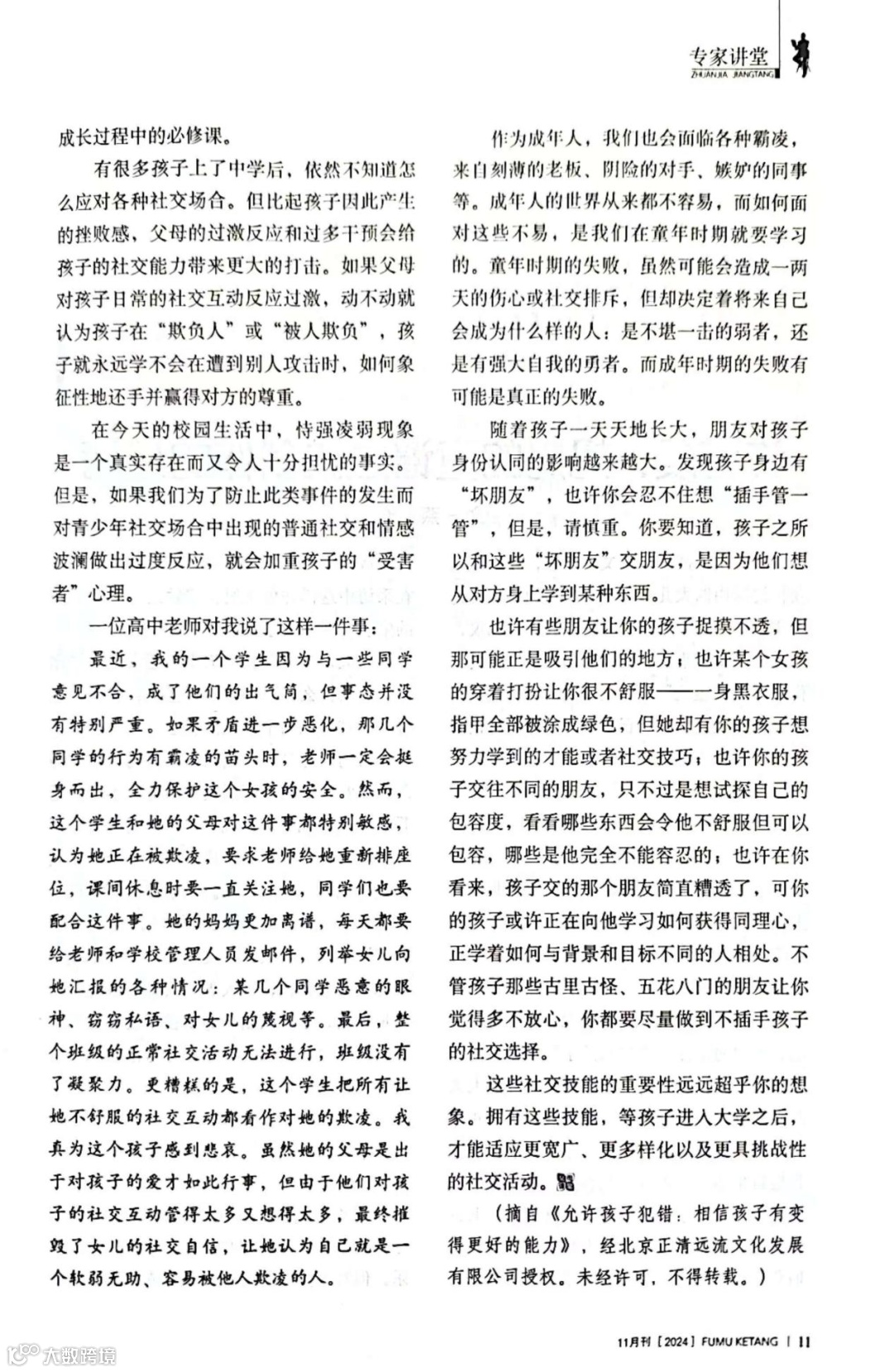 这次给大家推荐《父母课堂(2024年11月刊)》中的五篇文章,本期导读提纲由郑代生老师撰写,为您自主阅读和使用该刊提供合适的指导方向,欢迎各位家长积极阅读。