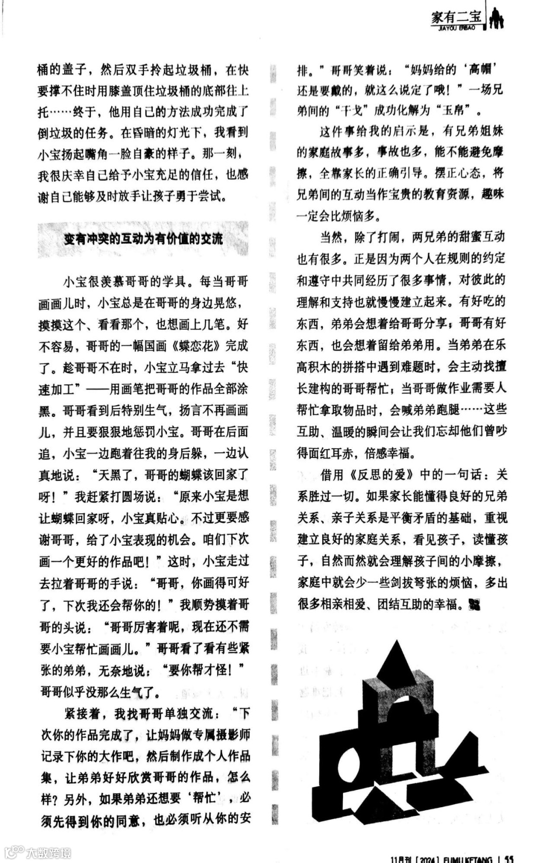《父母课堂》是家庭教育的智慧宝典,它用丰富的案例、科学的分析和实用的建议,助力家长全面理解并教育孩子。无论是儿童心理、行为习惯,还是学习方法、亲子关系,这本杂志都能为家长提供宝贵指导,助力孩子健康成长!