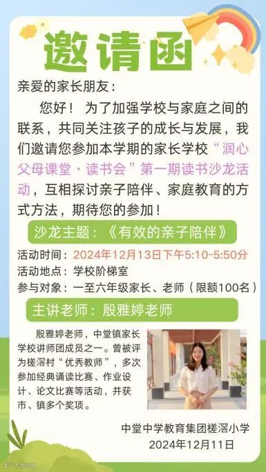 为迎接本次家长学校读书沙龙活动,我校积极筹划、精心准备,向家长们发出了精美的邀请函。