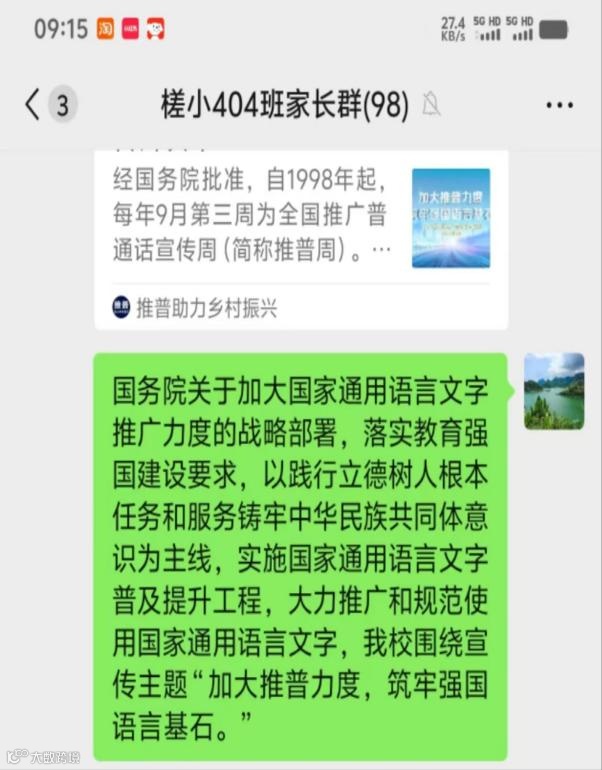 借助班级群宣传推普周活动,让校园内外人人知晓。