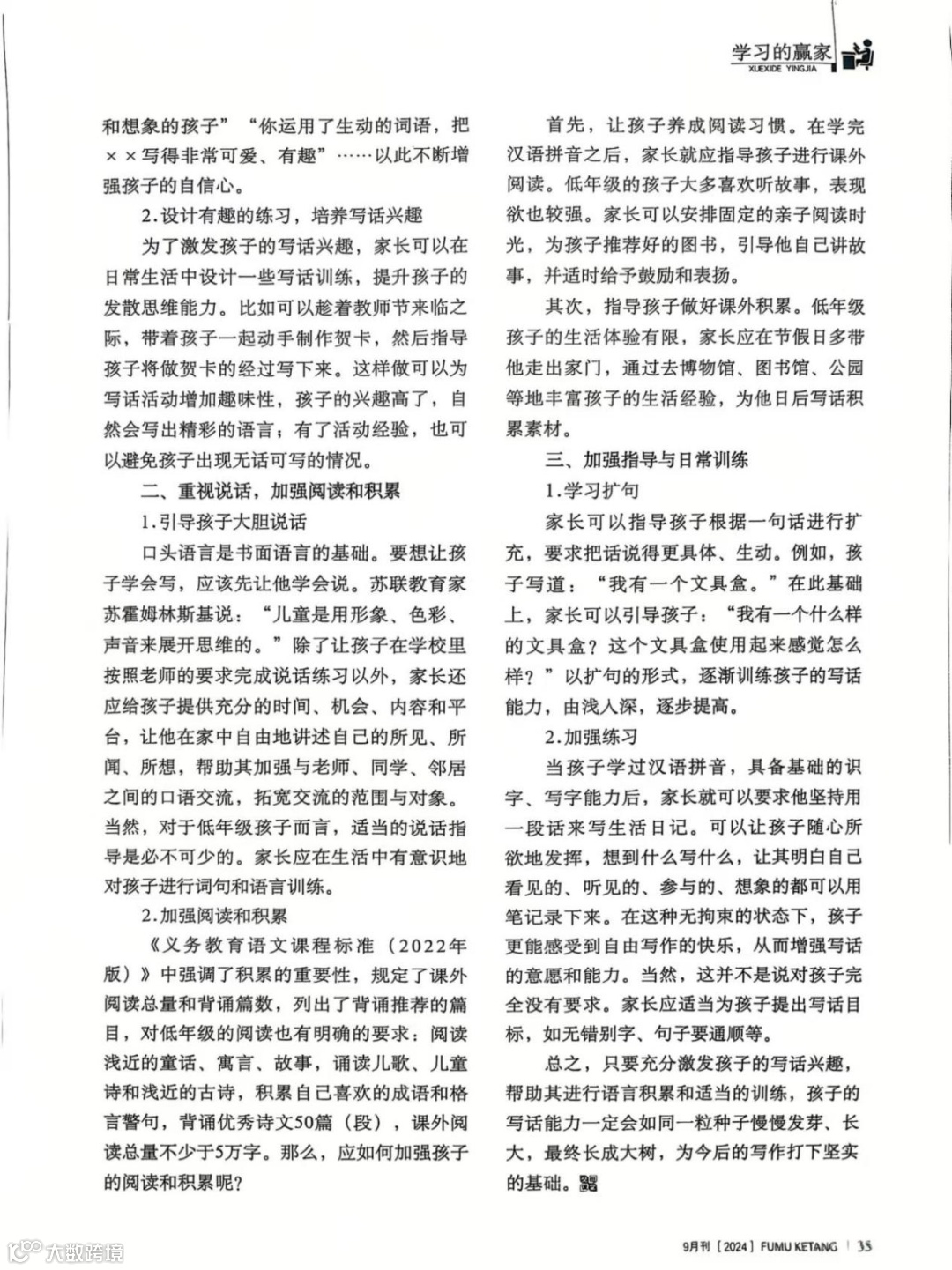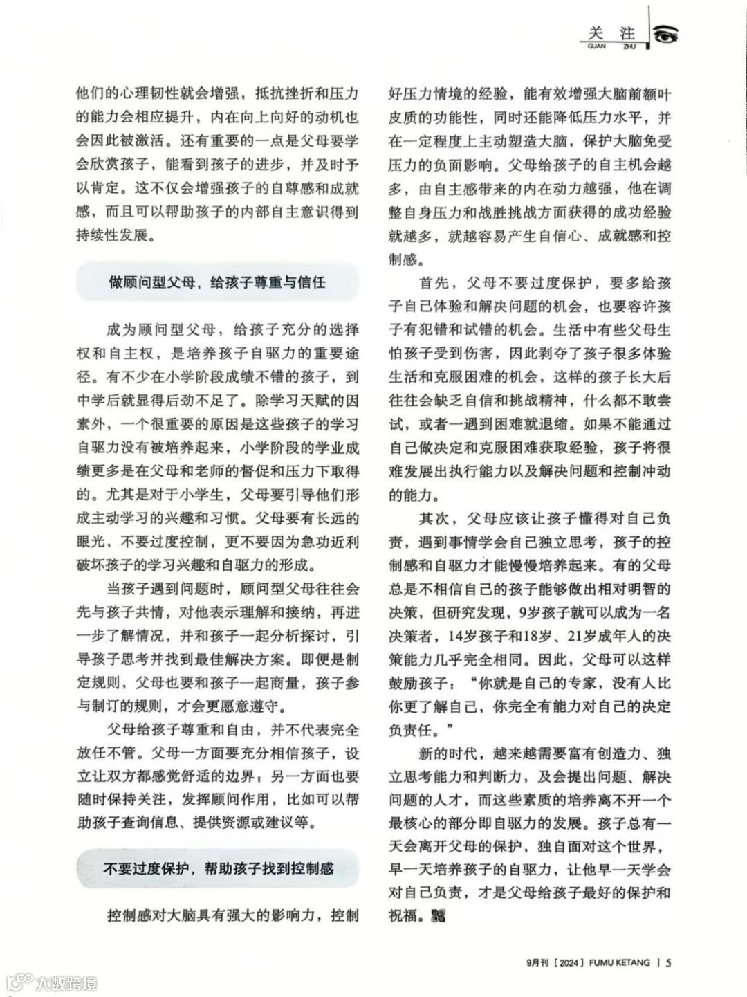 这次给大家推荐《父母课堂(2024年9月刊)》中的五篇文章,本期导读提纲由温柳媚老师撰写,为您自主阅读和使用该刊提供合适的指导方向,欢迎各位家长积极阅读。