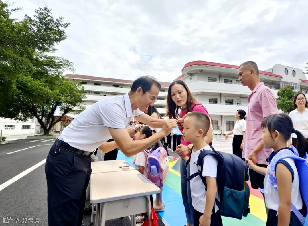 启智增慧,明礼启航。杨金华校长和黎勇副书记用红色的朱砂在孩子们的额头正中点上红痣,旨在引导学生迈出勤奋好学、尊师孝亲的第一步,系好人生第一粒扣子。祝愿孩子们从此眼明心亮,好读书、读好书。