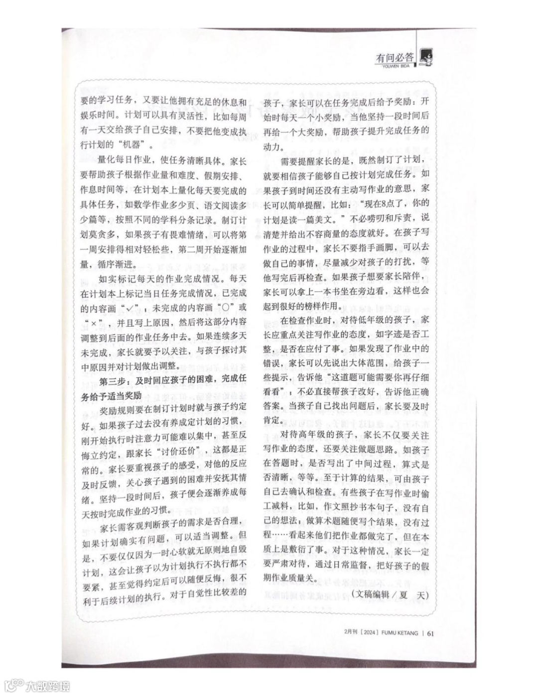 这次给大家推荐《父母课堂(2024年2月刊)》中的四篇文章,本期导读提纲由张佳仪老师撰写,为您自主阅读和使用该刊提供合适的指导方向,欢迎各位家长积极阅读。