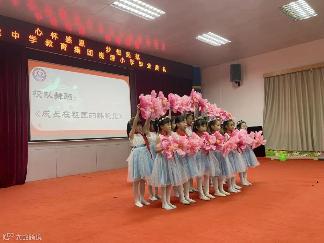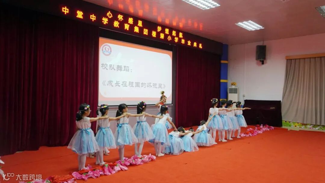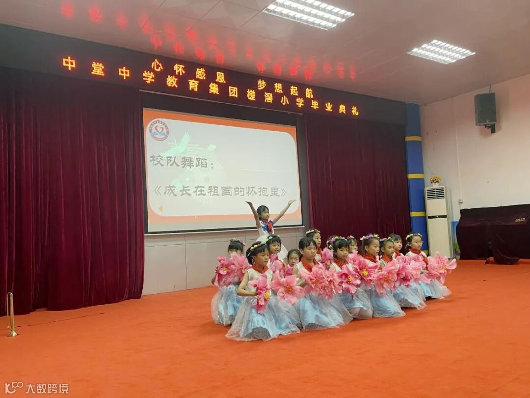 毕业典礼伊始,学校舞蹈队献上精彩舞蹈——《成长在祖国的怀抱里》,激发我们的爱国热情,激励我们努力学习,立志成才,报效祖国。