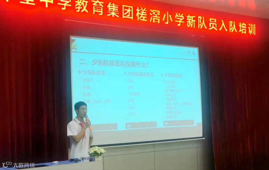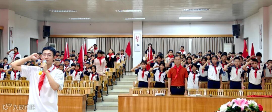仪式进行第六项,新队员宣誓,由学校少先队大队辅导员肖玉婷领誓。