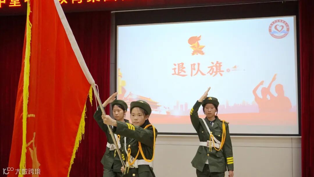仪式进行第十项,伴随着庄严的退旗曲,少先队新队员入队仪式圆满结束。