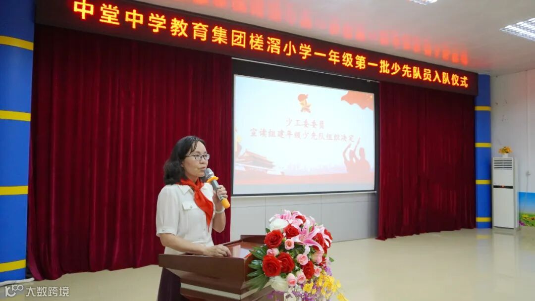 仪式进行第三项,学校少工委委员伍慧婵宣读组建年级少先队组织的决定。