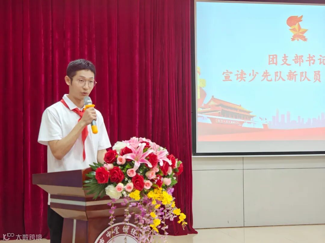 仪式进行第四项,学校团支部书记、少先队副辅导员林超鸿宣读少先队新队员入队决定。