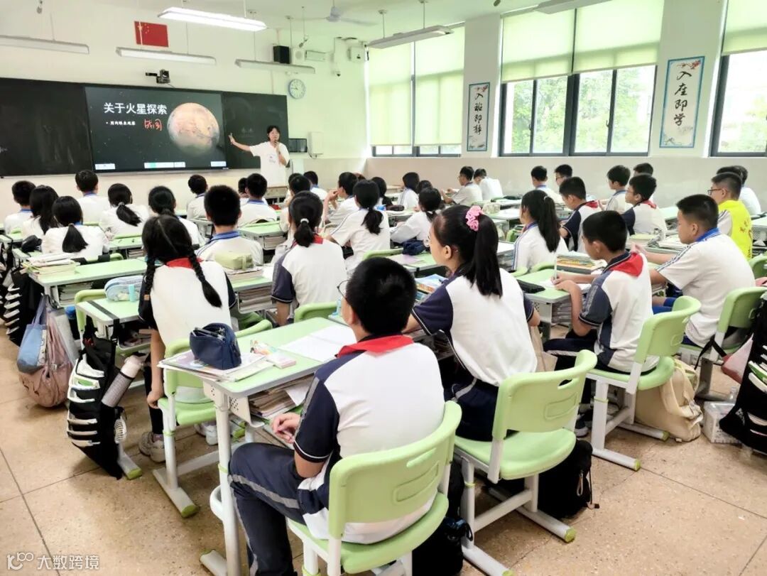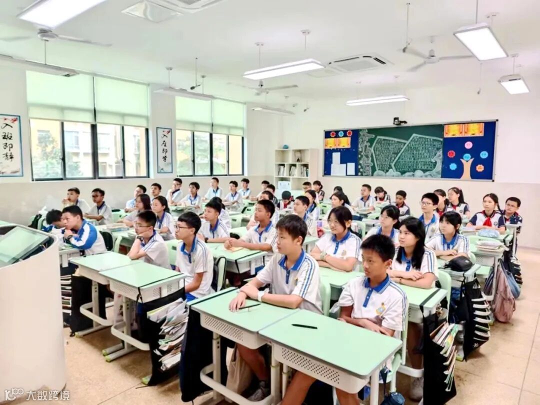 走进课堂,我们与七年级学长同上一节文化课。这宽敞明亮的课室,这一流的教学设备,这专注学习的课堂氛围,让我们心之向往。
