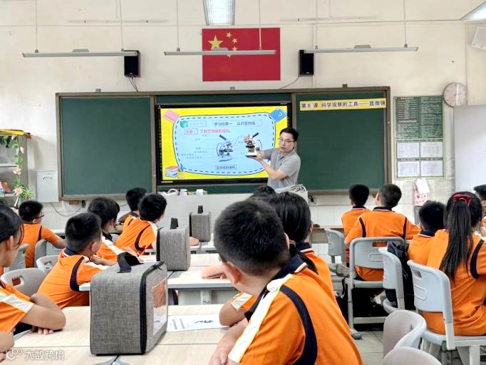 李创成老师带来的是五年级下册《科学观察的工具——显微镜》,这节课旨在帮助学生了解显微镜的组成,并掌握规范使用显微镜的方法。课堂上,老师通过精心设计活动,引导学生从认识显微镜到实际操作运用,激发学生对微观世界的好奇心和探索欲,整节课学习气氛浓厚,孩子们在边学习边实践的过程中掌握了科学知识,学习效果良好。