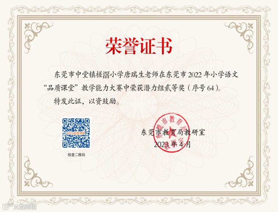 “品质课堂”教学能力大赛中荣获潜力组二等奖