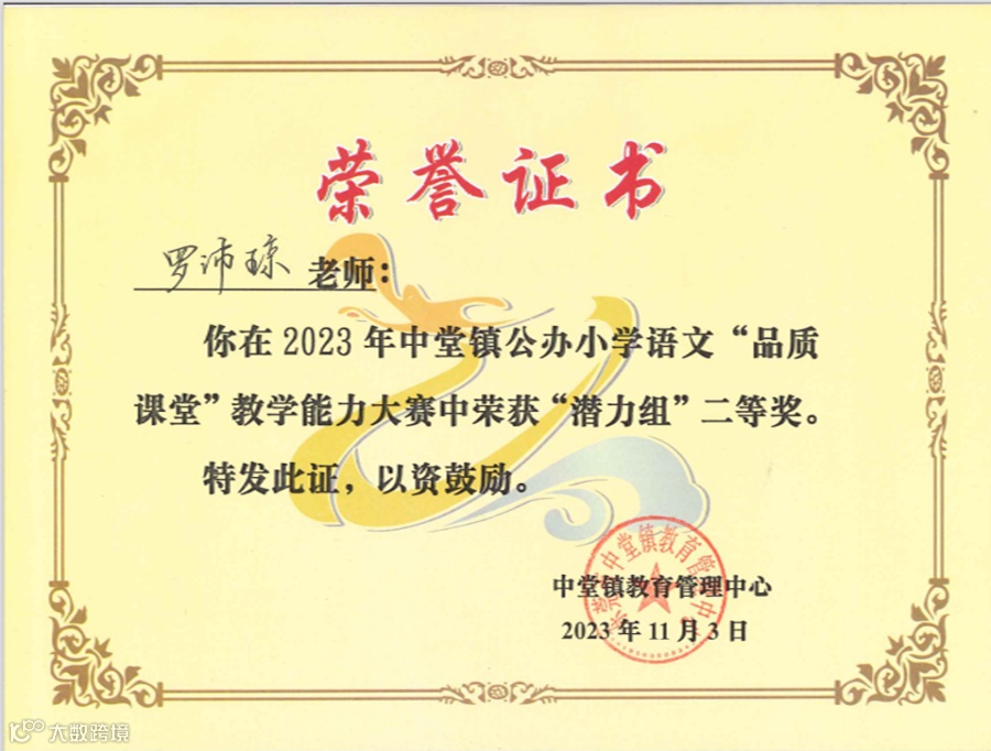 ▲罗沛琼老师在2023年中堂镇公办小学语文