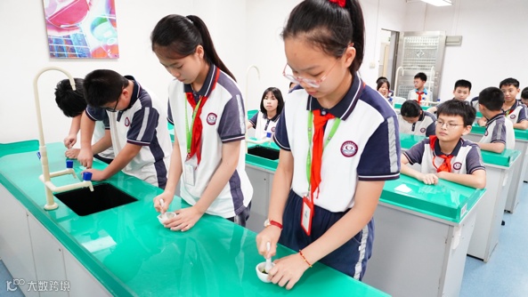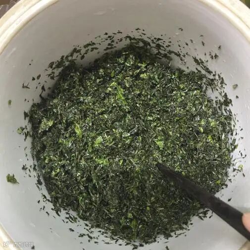同学们洗净采摘艾叶上的灰尘与泥土,剔除枝条与枯萎发黄的叶子,只选择嫩叶与嫩芽部分进行提取。你看!她们细心挑选,认真清洗,一遍、两遍、三遍,直到清洗后的水澄清干净。