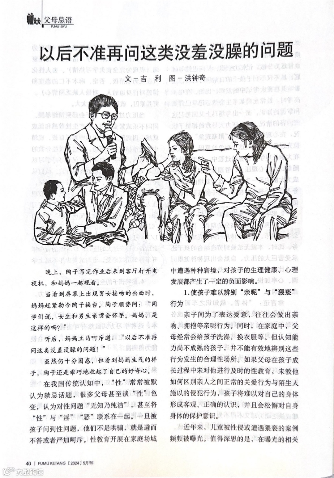 在我国传统认知中,“性”常常被默认为禁忌话题,很多父母甚至谈“性”色变。但父母如果没有及时对孩子展开性教育,孩子的身心健康都会受到一定的负面影响。如孩子难以辨别家人的“亲昵”与坏人的“猥亵”行为、孩子进入青春期后无法适应生理变化而产生心理压力(焦虑、自卑、恐惧)、采取不正确的方式获得性知识等。家庭教育是进行性教育的最佳场所之一,因此当被孩子问及与此相关的问题时,父母应把握教育契机,对孩子加以引导。