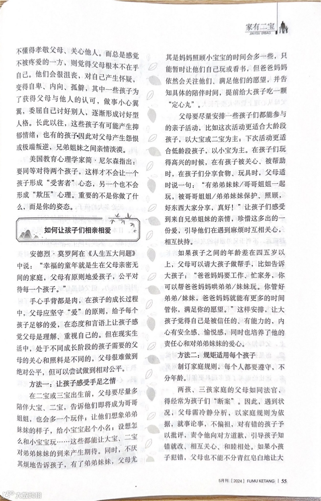 《父母课堂》是家庭教育的智慧宝典,它用丰富的案例、科学的分析和实用的建议,助力家长全面理解并教育孩子。无论是儿童心理、行为习惯,还是学习方法、亲子关系,这本杂志都能为家长提供宝贵指导,助力孩子健康成长!