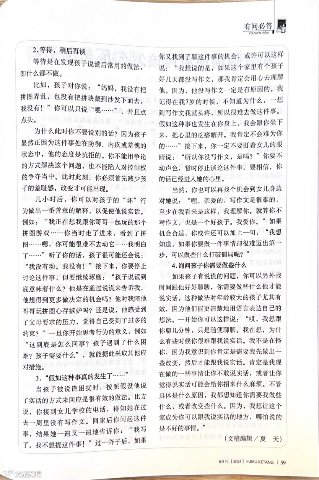 2.对年龄较大的孩子,可以试着询问孩子“我需要做出什么改变,你会更愿意说实话呢?”