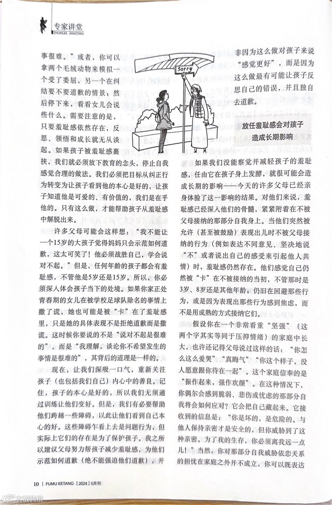 1. 识别孩子的羞耻感。“拒绝道歉”“撒谎”是羞耻感的典型表现。