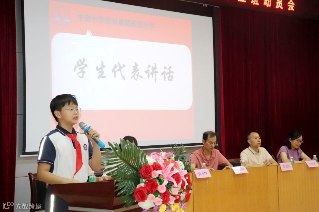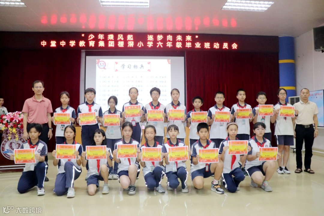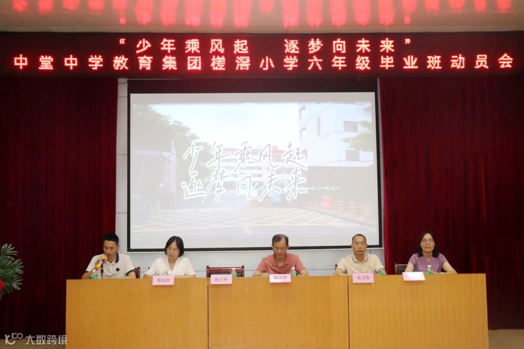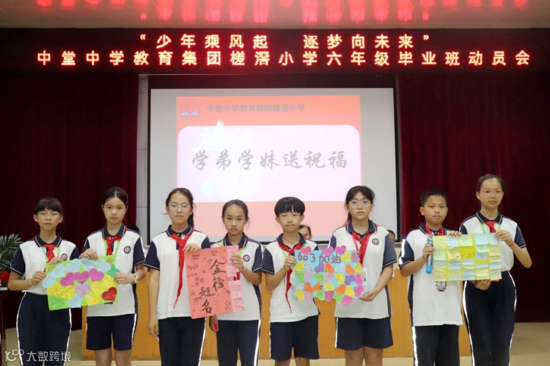少年胸怀凌云志,正是揽月逐日时!我们期盼着今年七月的“硕果累累”。为进一步激励六年级毕业班莘莘学子的拼搏精神,充分调动他们的学习积极性和主动性,营造积极进取的学习氛围,5月17日下午,中堂中学教育集团槎滘小学在阶梯室举行了以“少年乘风起,逐梦向未来”为主题的2024年毕业班动员会。出席本次动员大会的有杨金华校长、翁文伟副校长、德育处伍慧婵主任、教导处黎金玲副主任、郑代生级长以及六年级全体师生、五年级学生代表。会议由郑代生级长主持。