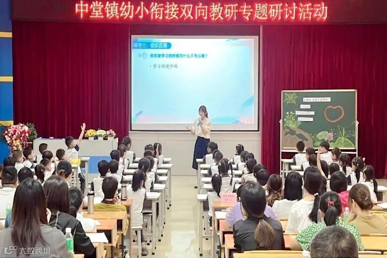 绿树阴浓夏日长,楼台倒影入池塘。立夏已至,春天已融入万象生辉之中。为认真落实《广东省推进幼儿园与小学科学衔接攻坚行动方案》,及时总结和推广学前教育教研和幼小衔接工作经验,促进我镇教研和幼小衔接工作深入开展,提升教研品质,加强品质课堂建设,推进我镇幼儿园与小学科学衔接深入开展,2024年5月9日,中堂镇教育管理中心在槎滘小学开展中堂镇幼小衔接双向教研专题研讨活动。参加活动人员有教管理中心负责幼儿园教育教研员罗美华老师和全镇小学、幼儿园负责幼小衔接的行政及骨干老师代表100多人。