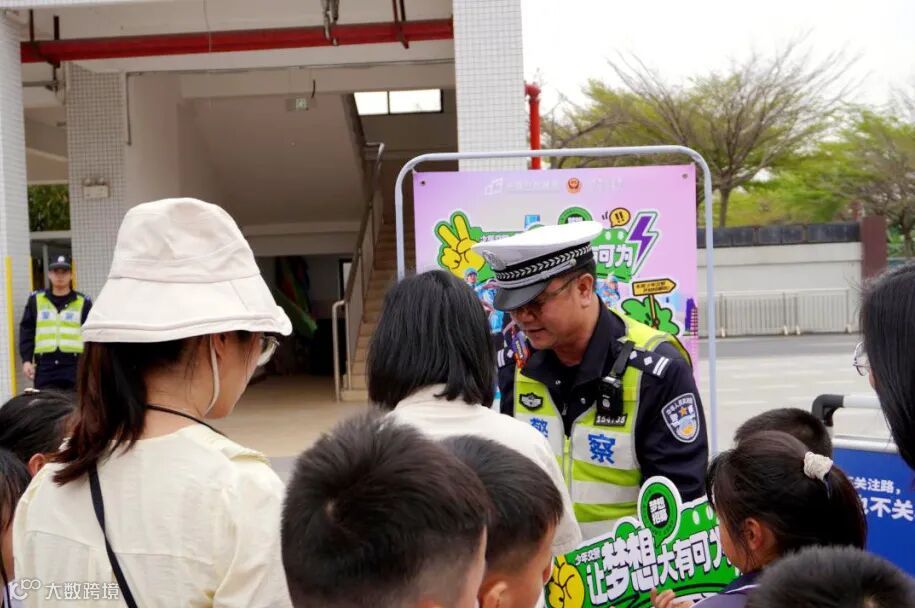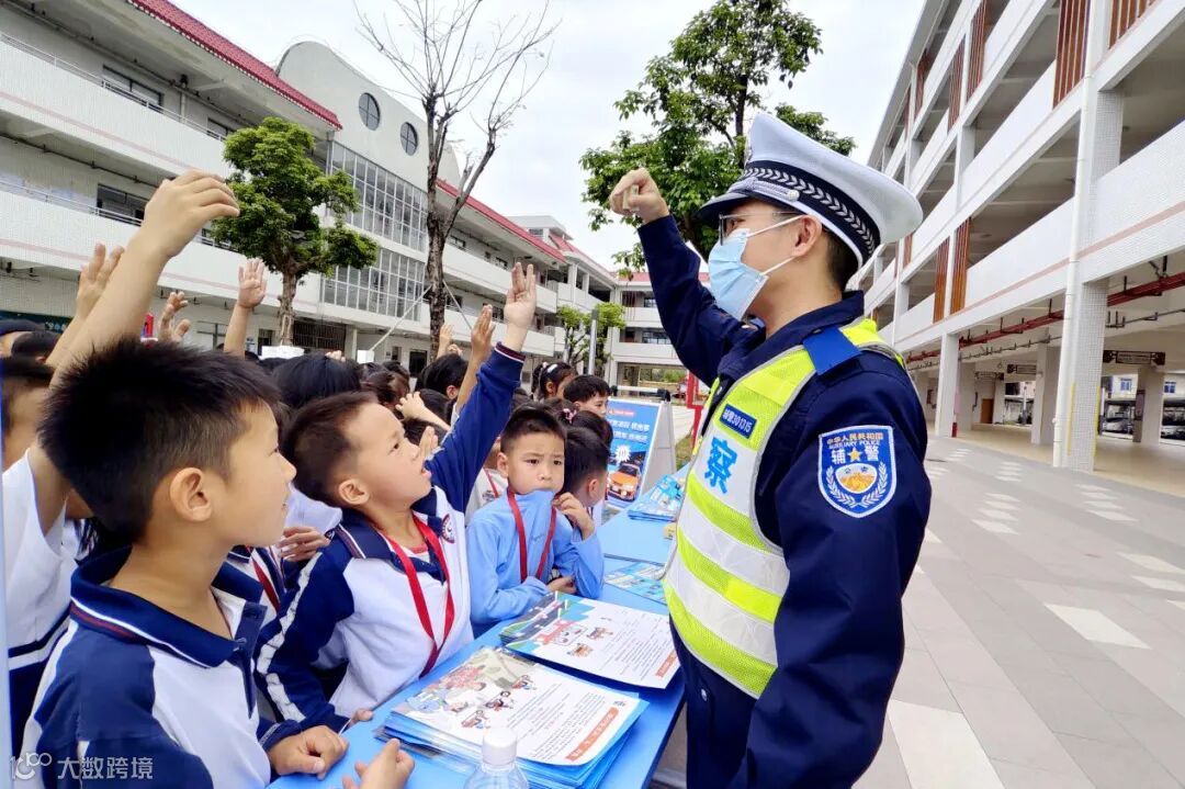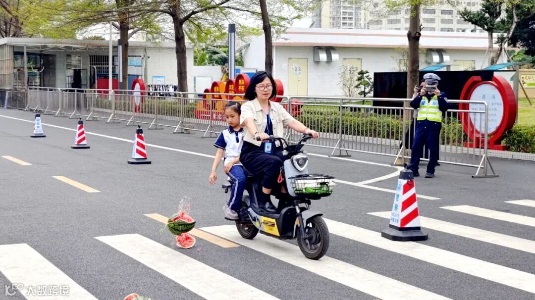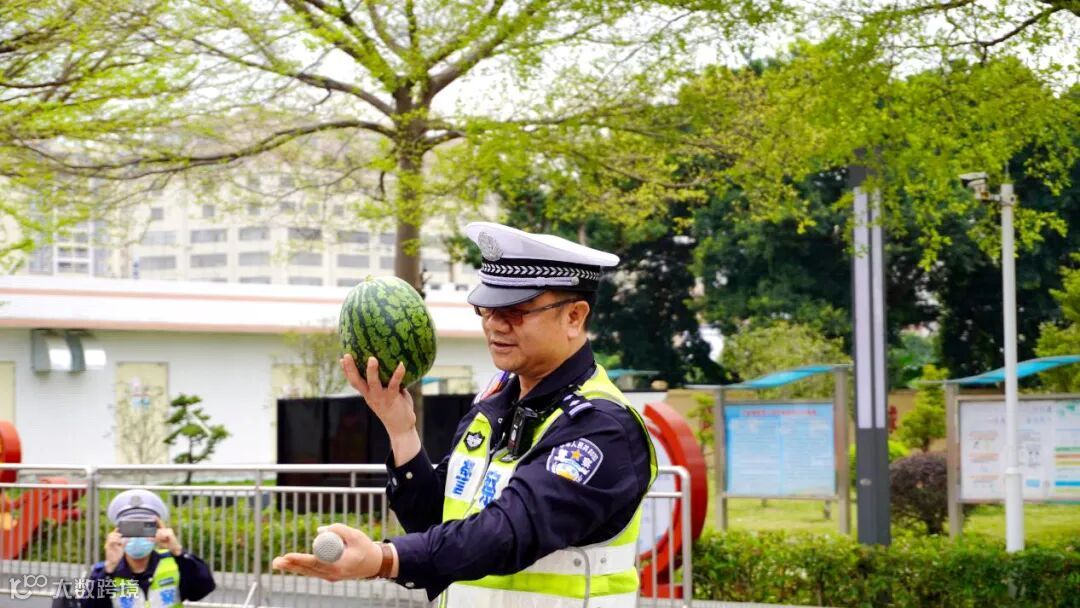 交警叔叔们还采取“宣讲+体验”、“互动+游戏”的方式,用西瓜装进头盔和不装进头盔的对比,让学生在游戏中体验红绿灯、安全头盔防护作用等交通安全知识。