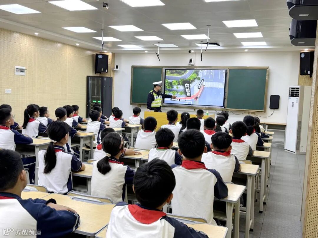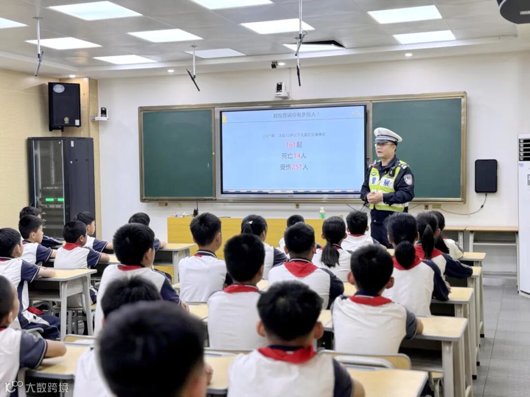 活动中,邓警官充分结合校园实际,围绕学生出行安全,通过交通安全PPT课件讲解、播放交通安全警示教育片、现场互动提问等形式,用通俗易懂的语言,深入浅出地向同学们讲解了交通信号灯、人行横道线等标志标线的作用及日常出行交通安全小常识,讲解交通安全的重要性,增强学生们学习交通知识的热情,切实提升学生的交通安全意识和自我防护能力。