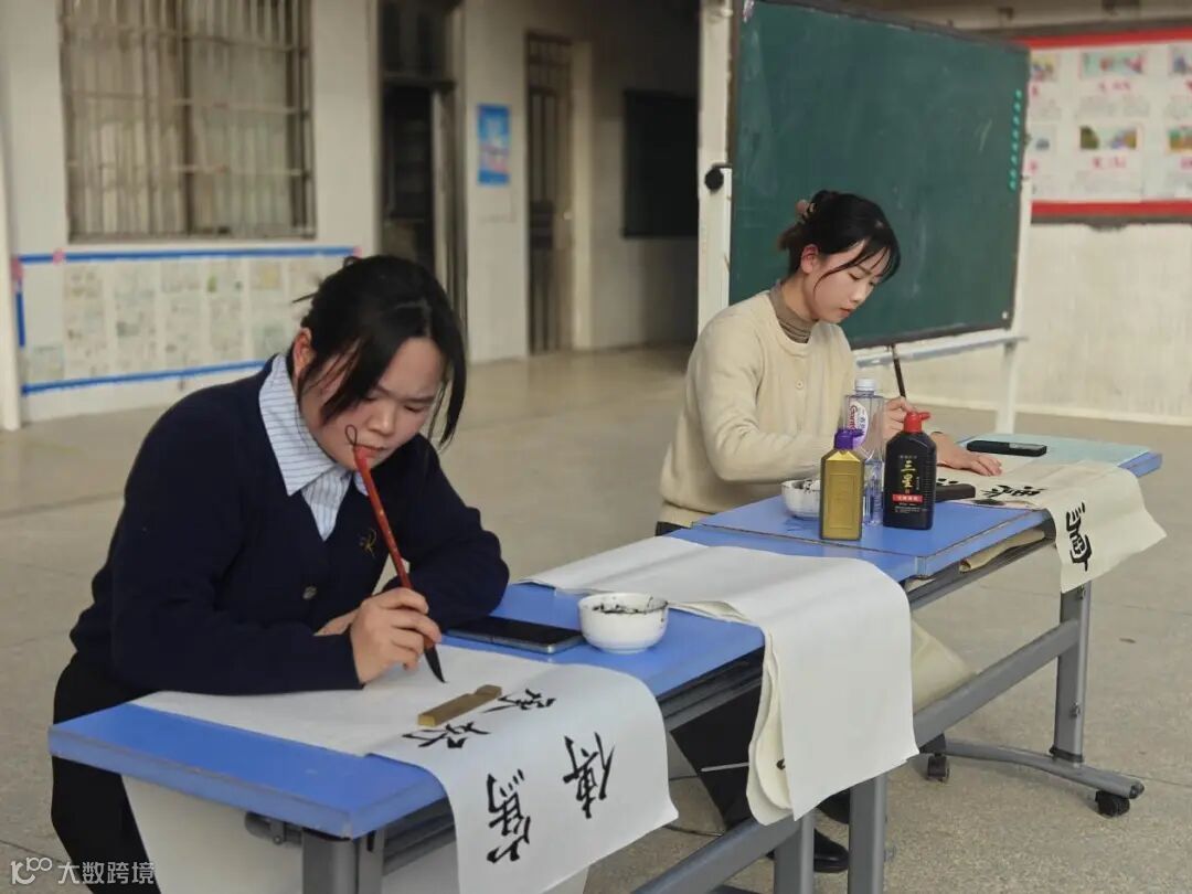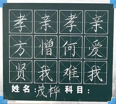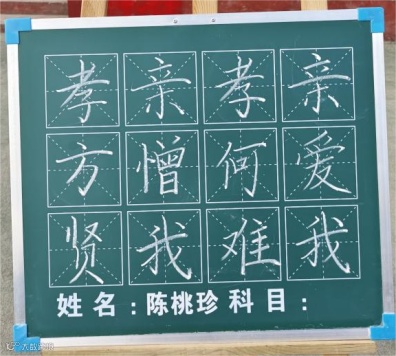 与此同时,现场参赛的老师们也不甘落后,纷纷拿起手中的粉笔、毛笔,精心书写,在黑板上,白纸上留下了一幅幅精美的作品。