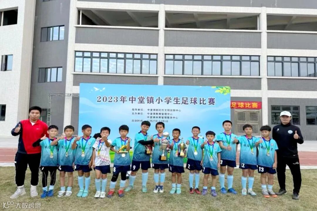 12月1日下午,由中堂镇教育管理中心、中堂镇文广中心主办的2023年中堂镇小学生足球比赛圆满收官。经过为期五天的顽强拼搏,我校男子足球队获得全镇亚军的成绩。我校陈文杰、谭剑明老师荣获“最佳教练员”,谭煦明同学荣获“最佳射手”荣誉称号。我校足球队在比赛过程中稳扎稳打,比赛场面跌宕起伏,值得称赞的是队员们奋力拼搏、始终不放弃的战斗精神。