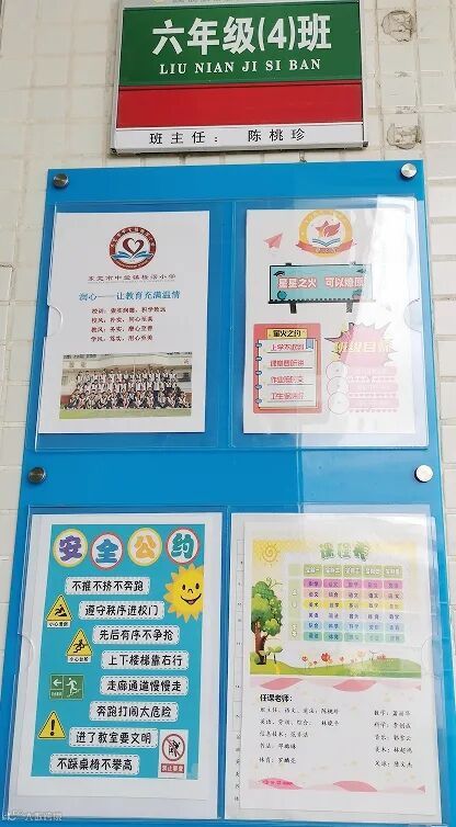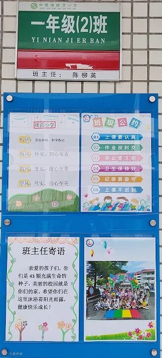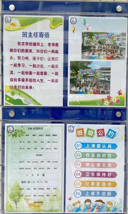 还未走进教室,首先映入眼帘的便是各班独具特色的班牌栏。班级口号、班主任寄语、班级大合照,每一处都彰显了积极昂扬的班风。