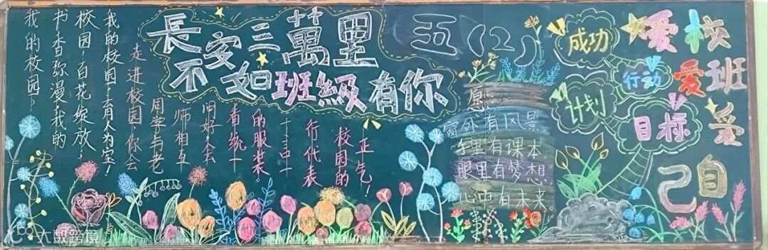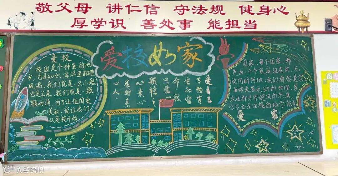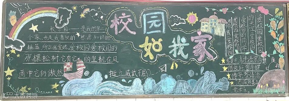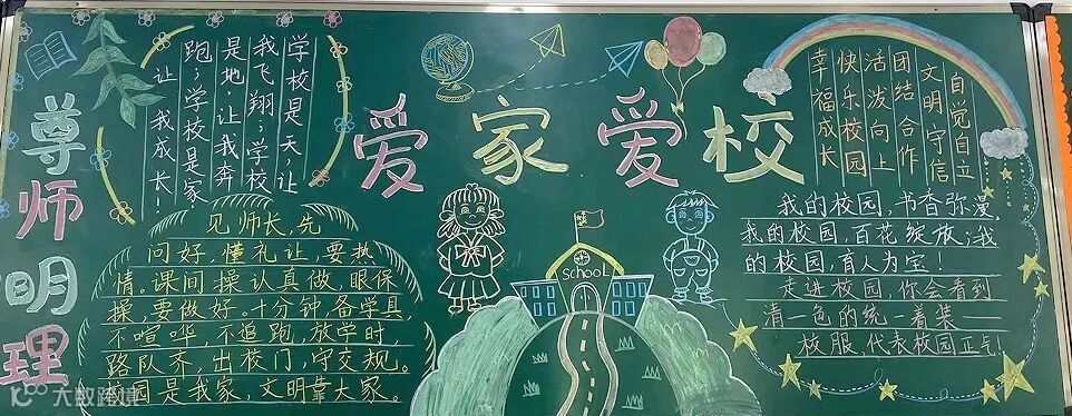方寸之墙展鸿鹄之志,咫尺之间显班级风采。各班级结合11月校运会和家长会的到来,努力营造积极进取、健康向上、温馨和谐的“爱校爱家爱自己”班级黑板报文化氛围,力争“使每一面墙壁会说话,让每一处环境能育人”。