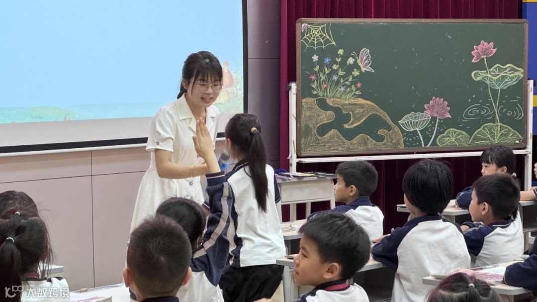 我校的张老师在课堂上通过创设“动物王国”的情境,带领学生聆听蜻蜓展翅、观赏蝴蝶花间飞舞,通过精美又充满童趣的板书,有趣的互动游戏,让学生入情入境,激发学生的识字兴趣。而后引导学生通过自由读课文,圈画文中有哪些动物,自由练读等方式,扶放结合,让学生熟悉本课的生字和内容,体现了以教师为主导,以学生为主体的教学原则。最后,张老师范写走之底,强调关键笔画,提出规范书写三颗星的评价标准,让低年级的学生能够关注细节,正确规范地书写汉字,从小培养良好学习习惯。