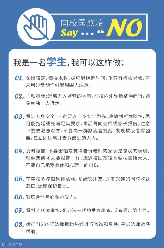 如遇到欺凌或者性侵,请第一时间告知班主任老师或者学校。举报电话:0769-8881217