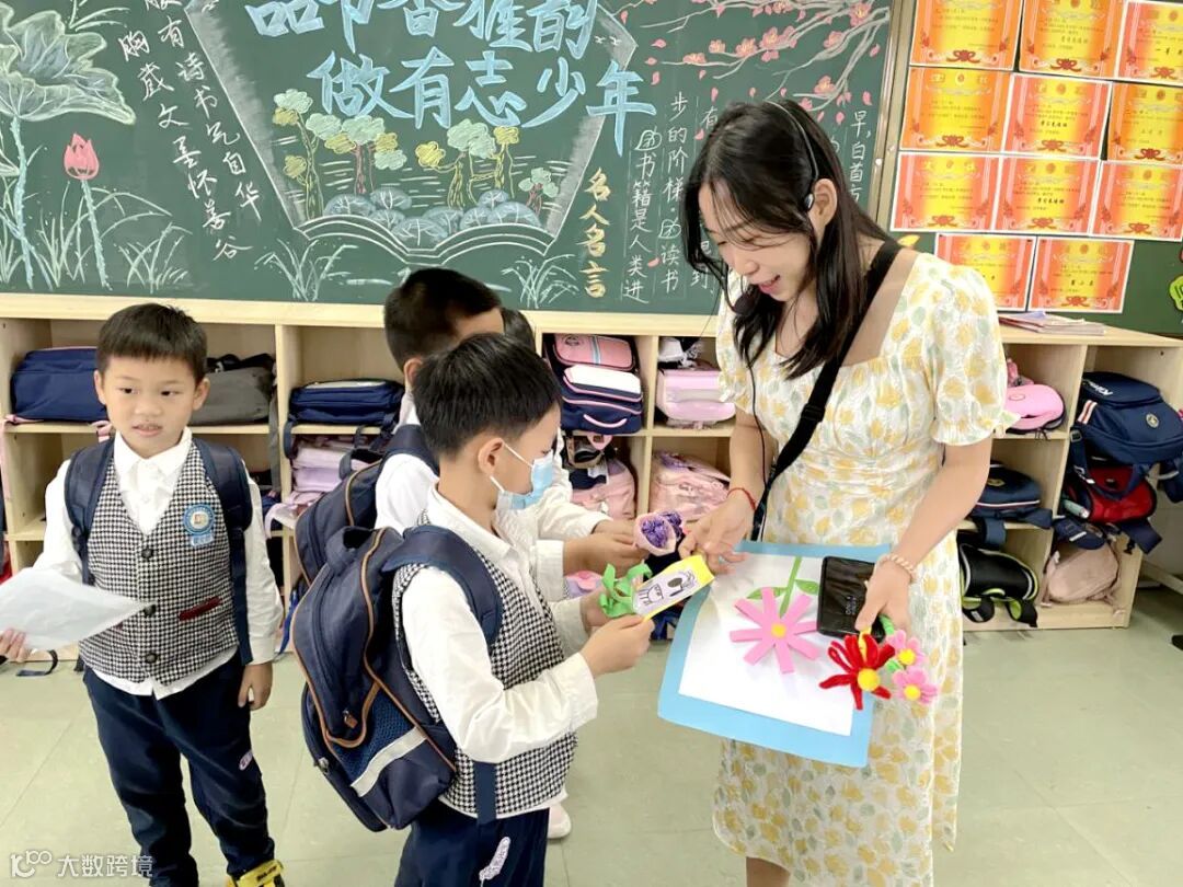 幼儿园的小朋友体验完一节小学的课程后,纷纷采访小学一年级的哥哥姐姐,向哥哥姐姐们提出自己心中感兴趣或不明白的问题。采访结束后,还为哥哥姐姐们送上自己制作的小礼物。活动气氛融洽,孩子们都收获满满。