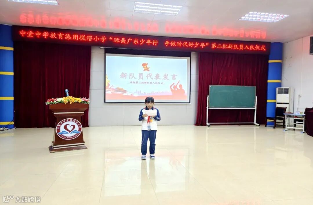 火红的队旗高高飘扬,指引我们前进的方向。鲜艳的红领巾系满理想,载着我们扬帆远航。火红的十月倾听星星火炬的呼唤,燃烧的梦想呼应闪耀的红领巾。10月20日下午,中堂中学教育集团槎滘小学举行了“绿美广东少年行 争做新时代好队员”二年级第二批新队员入队仪式,165名二年级学生光荣加入中国少年先锋队。