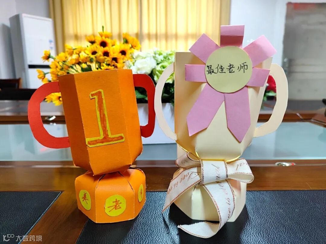 三四年级的同学们别出心载,设计出了个性化的奖状和奖杯,用实际行动为老师们送上最有爱的礼物。