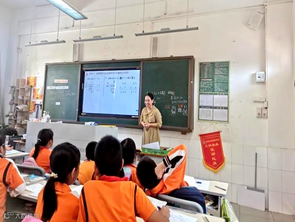 课堂上,黎老师以任务驱动和问题引领,带领四(1)班的孩子们用“四舍”法试商调商,探讨除数是两位数的笔算除法的计算方法。在课堂交流、优化算法的过程中,体会用“四舍”法估算的必要性,明确怎样试商、为什么要试商。借助“四舍”法试商的合作交流中,引导学生感知需要调商的情况,明白为什么要调商、怎样调商。最后通过巩固练习,掌握试商、调商的计算技能,让学生知算法,明算理。