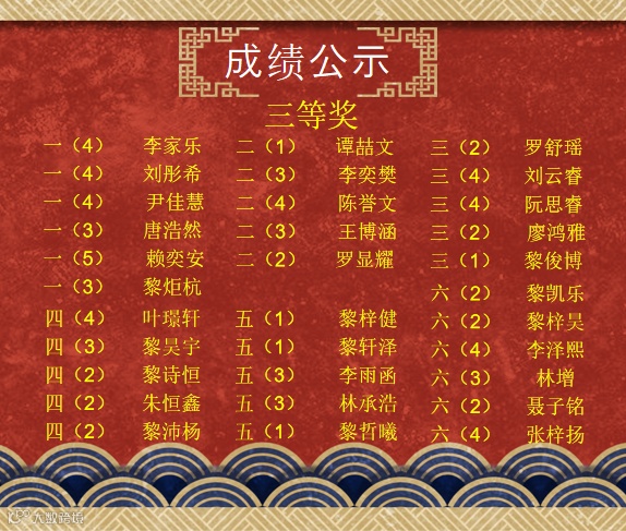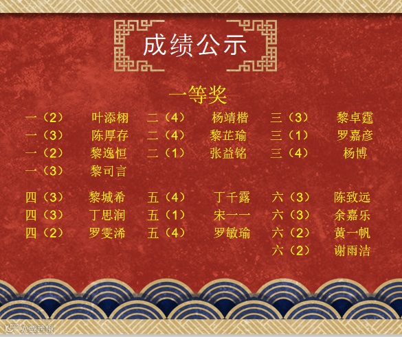 成绩的获得,离不开同学们平时每天坚持计算、勤思多练、活学善用,辛勤的付出也换来了喜人的成绩,祝贺以下获奖的同学。