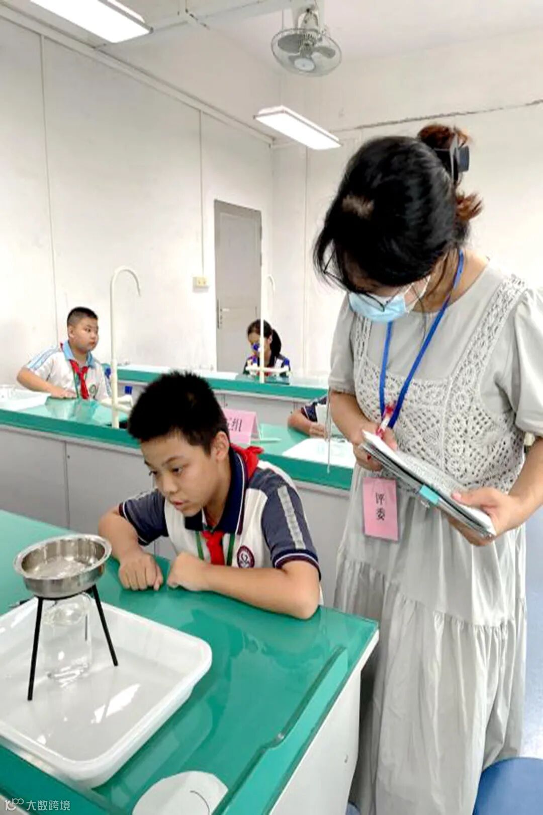 本次测评试题共有四个:《模拟降雨的形成过程》《蜡烛的燃烧》《模拟地球的自转》《观察水凝结现象》。学生们在监督员的见证下有序抽取试题,静心等候实验。