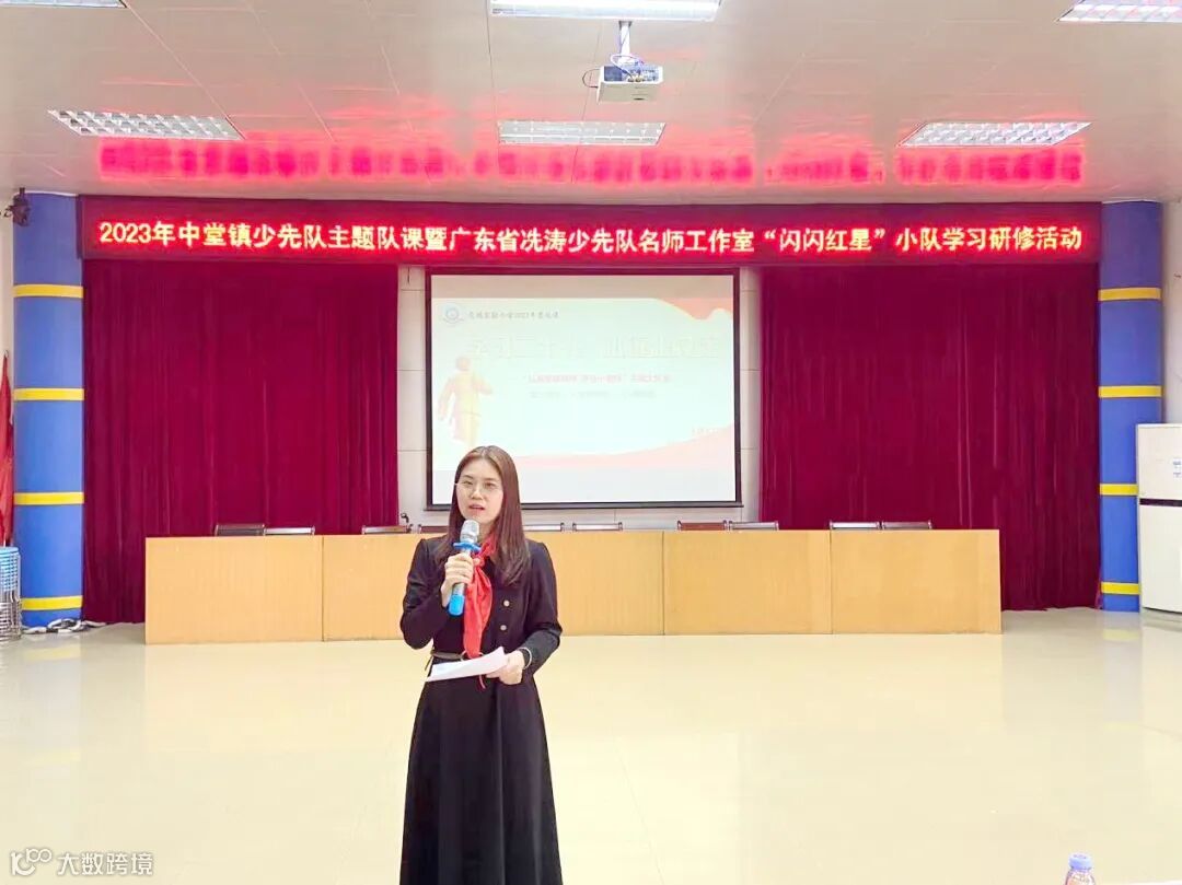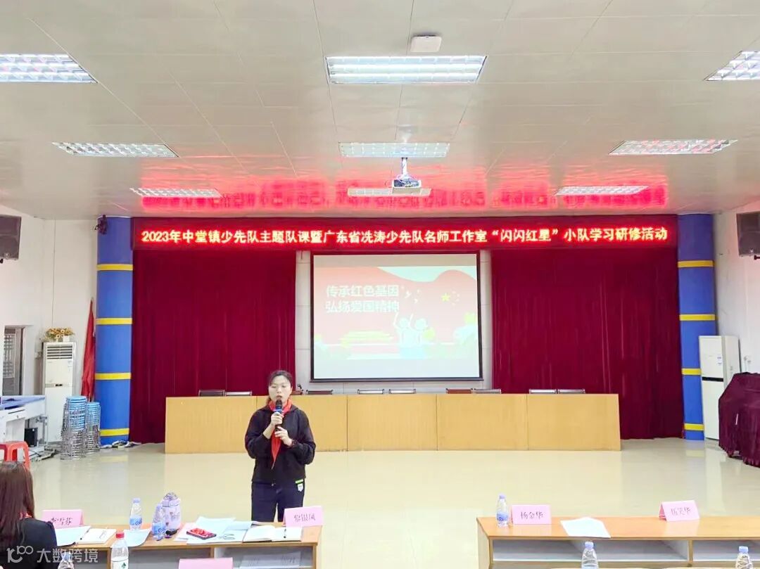 为提升少先队名师工作室学员和中堂镇公民办学校少先队大队辅导员的专业能力,提高少先队活动课的水平,2023年3月9日,“传承红色基因,弘扬爱国精神”中堂镇少先队主题队课暨广东省冼涛少先队名师工作室“闪闪红星”小队学习研修活动在中堂中学教育集团槎滘小学成功开展。中堂镇少先队总辅导员黎银凤、槎滘小学少工委主任杨金华、莞城实验小学德育主任、大队辅导员李雪芬、莞城实验小学大队辅导员陈旭芬、中堂镇第二小学大队辅导员伍笑华以及广东省冼涛少先队名师工作室“闪闪红星”小队的全体成员出席本次活动。来自全镇各中小学20余名少先队大队辅导员参与了本次活动。