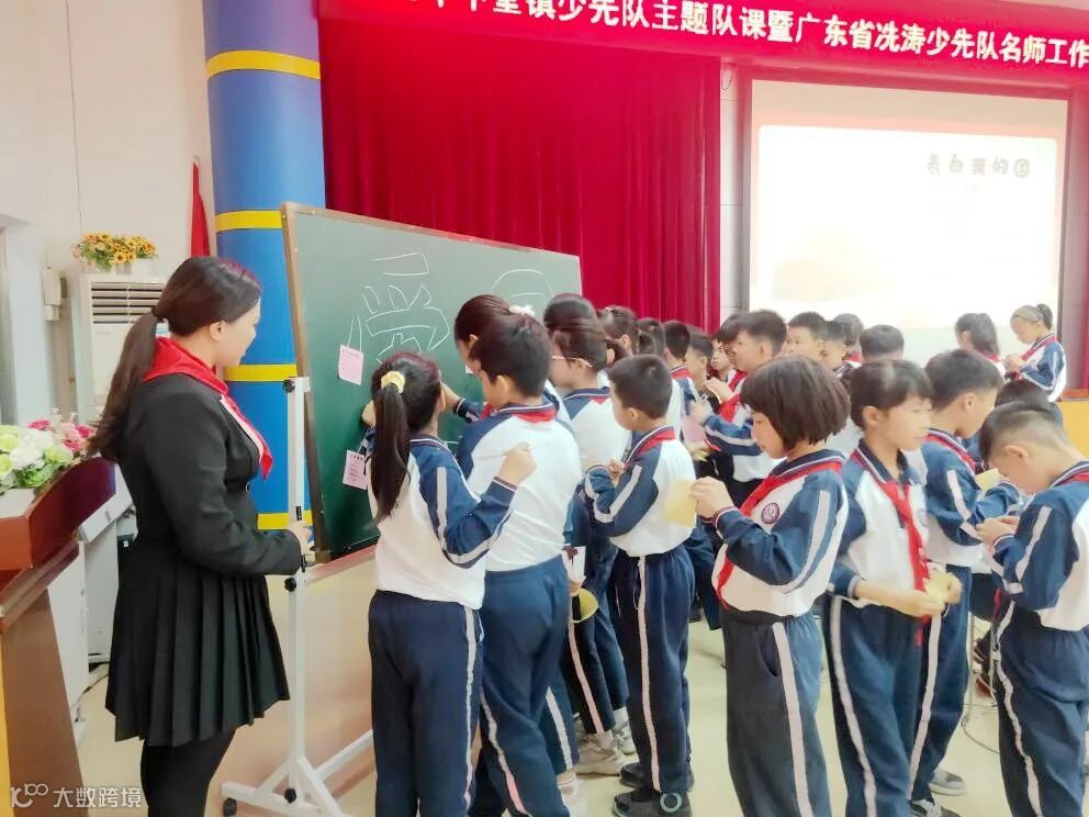 最后,中堂镇槎滘小学402中队的队员们用一颗颗小红心写满对党和国家的祝福,贴在黑板上,表明自己的决心:请党放心,强国有我!