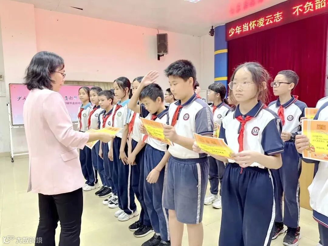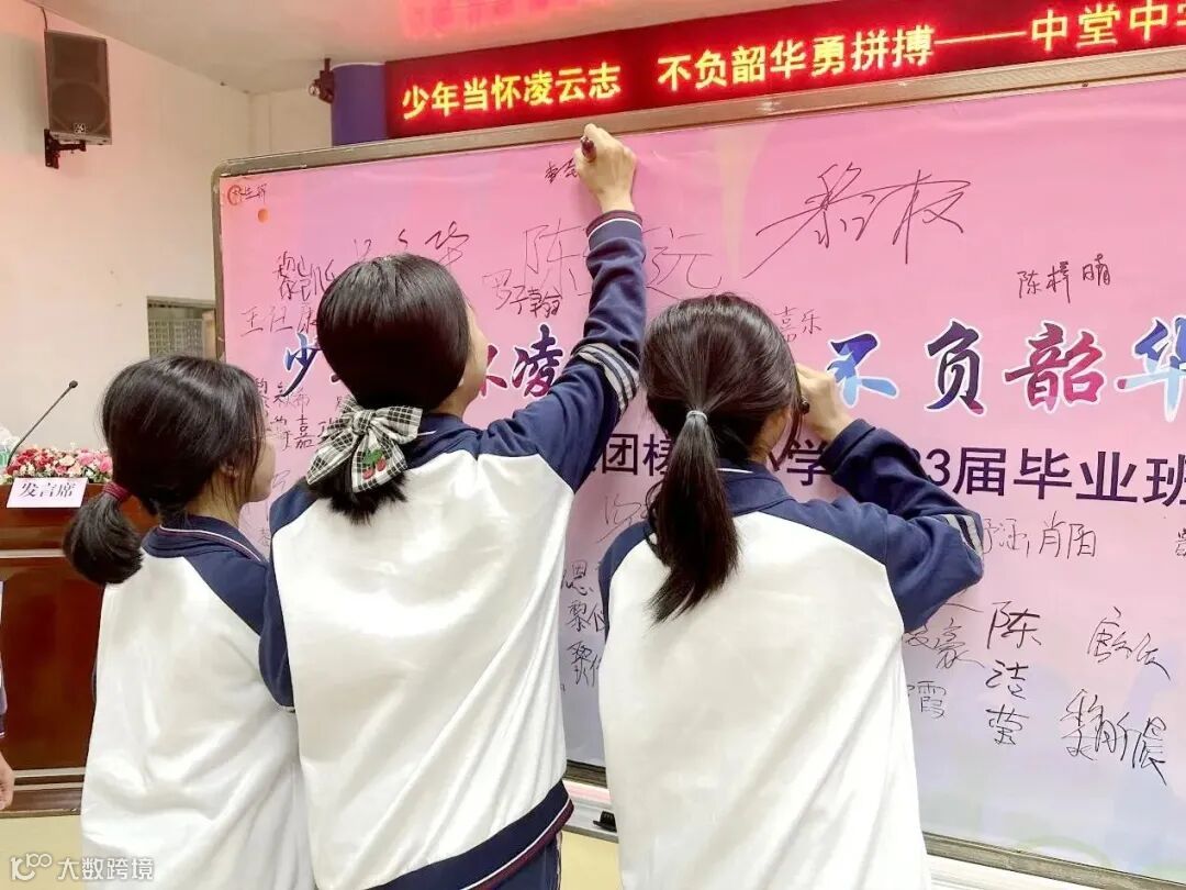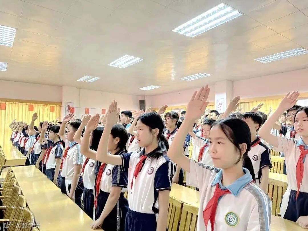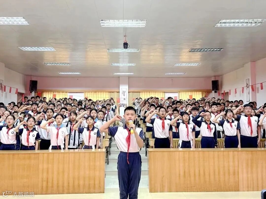 整装待发,应是铿锵有力。毕业班全体同学在领誓人六(1)班汤天逸带领下进行庄严宣誓。同学们昂首挺胸,紧握拳头,以饱满的热情,激昂慷慨的语调,发出鼓舞人心的誓词,作出无比庄严的承诺,铿锵有力的誓言响彻会场,将本次活动推向高潮。