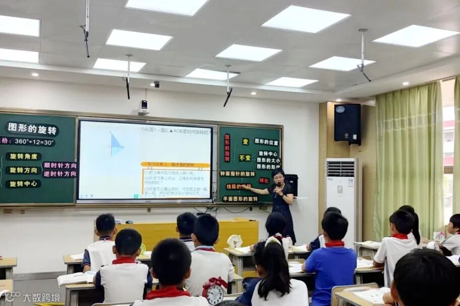 南城阳光第一小学黄晓莉老师通过创设射击泡泡的游戏,引入新课,让学生认识和掌握旋转的三要素的重要性,并且学会用数学语言描述图形旋转运动。课堂学习氛围浓厚,学生不仅学到了知识,还在学习中感受图形的变换带来的美感。