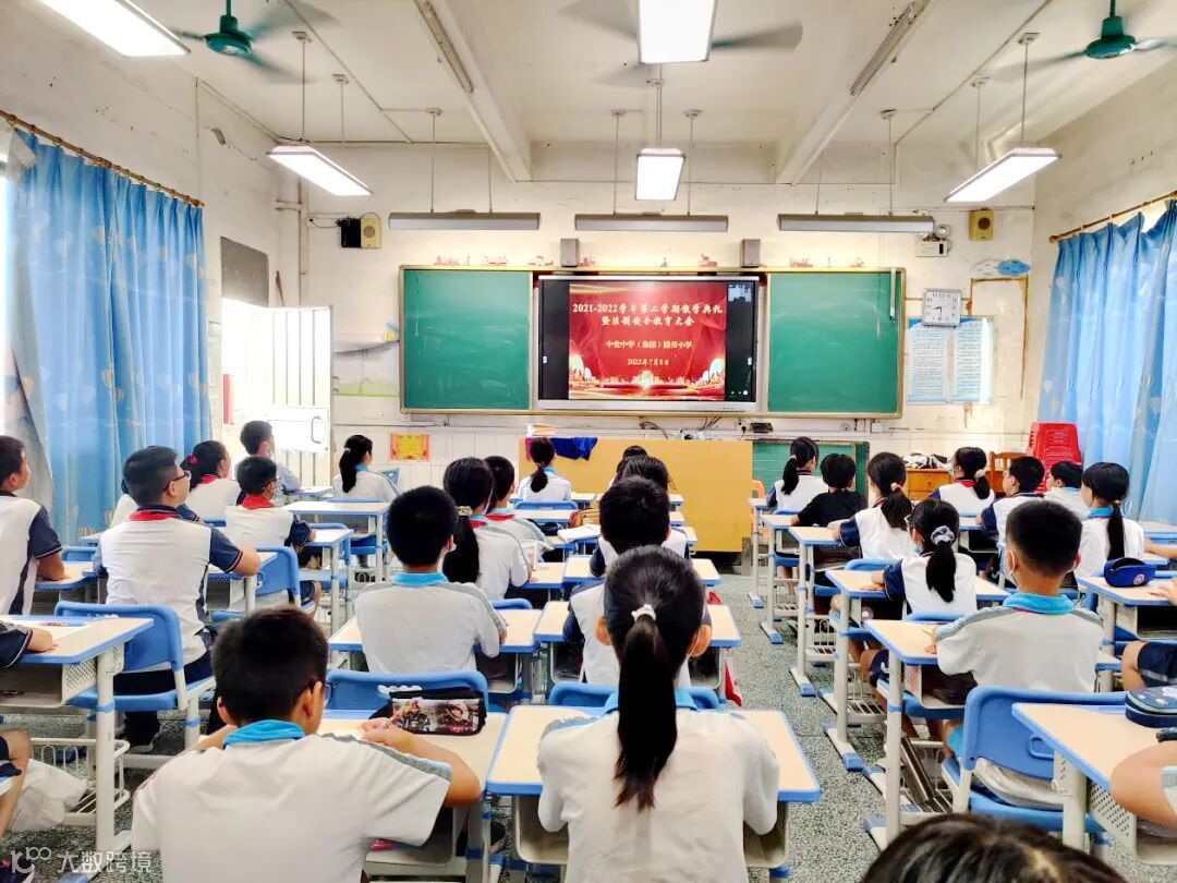 一个学期在全体师生的戮力奋斗中结束了,经历了一个繁忙而又充实的学期,学生们终于迎来翘首以朌的暑假。为了学生们过一个安全、有意义的暑期生活,2022年7月8日上午8:30,中堂中学(集团)槎滘小学各年级在各班教室举行了2021-2022学年第二学期线上散学典礼。本次活动由德育处刘传平主任主持。