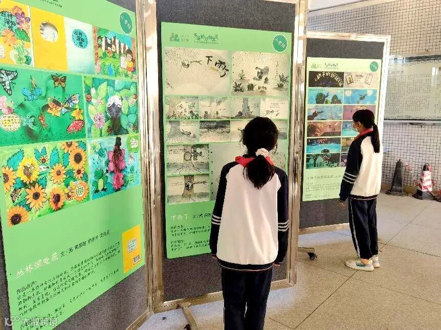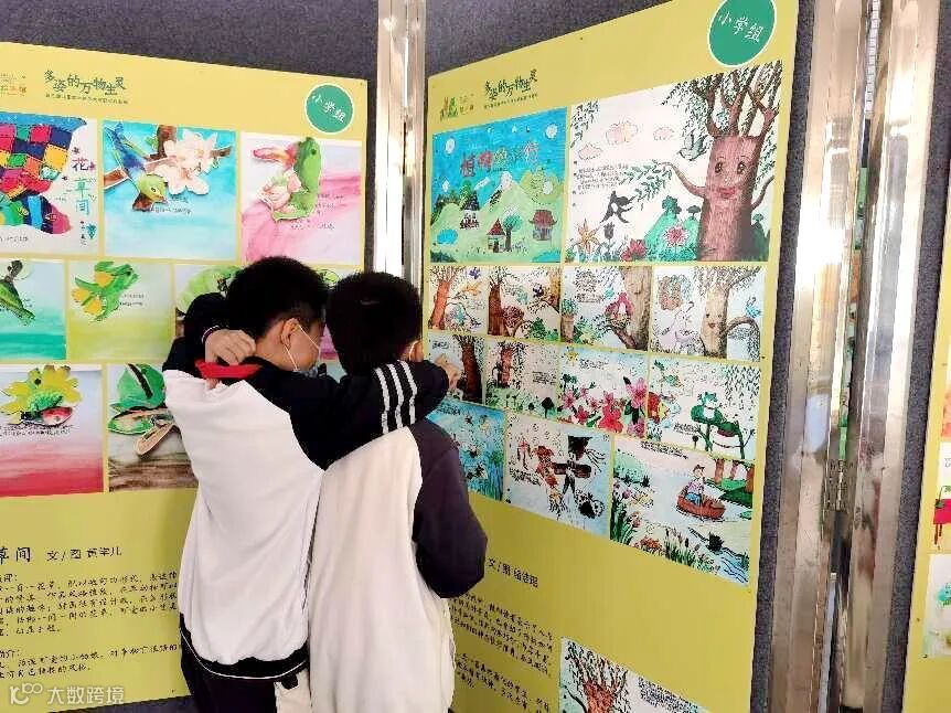 在课余时间,全校师生在此驻足观看,纷纷为优秀的绘本作品点赞!